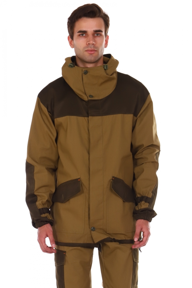Капюшон притачной по горловине, с кулисой по лицевому вырезу, стягивающейся шнуром. По передним частям рукавов внизу кулиса. Манжеты притачные, стянутые эластичной тесьмой