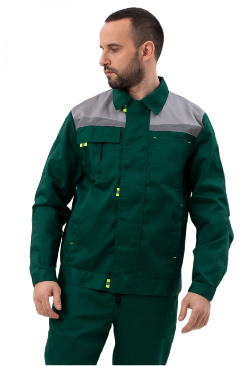 ➠ Куртка укороченная, притачной пояс, центральный клапан на контактную ленту с желтыми флажками. Воротник отложной.